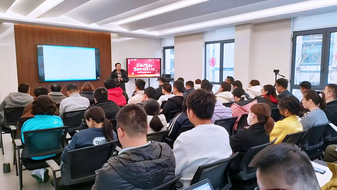 2024 年 2 月 19 日下午 , 山東容弗新信息科技有限公司 2024 年度員工大會在公司多功能廳召開 . 此次大會以“砥礪前行...